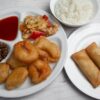 Alkuruuaksi kasvis kevätkääryleet (3kpl) Pääruoka: valkosipuli kanaa, härkää chili, friteerattua kanaa