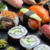 Lohi, tonnikala ja kasvis. (Koottu sushiannos päivän valikomasta)